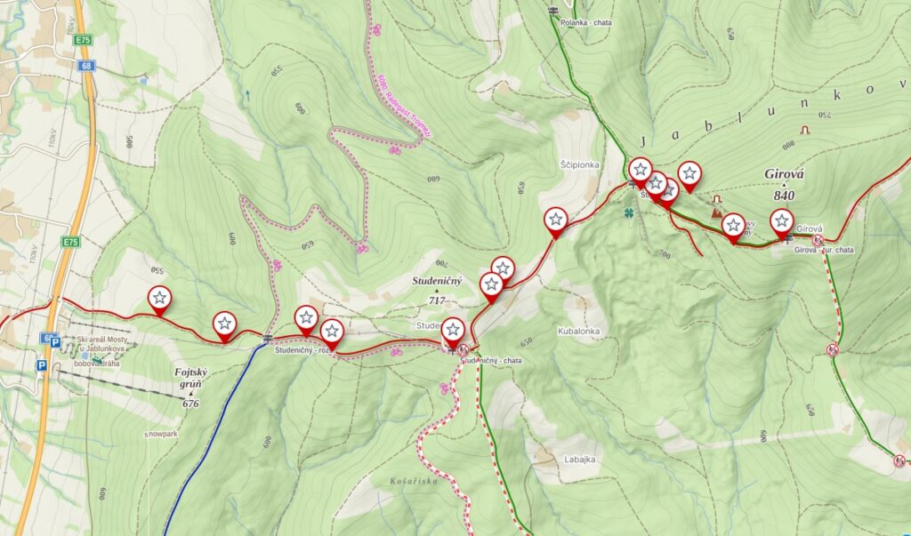 Tady máte souřadnice i odkazy na stránky jednotlivých bodů: